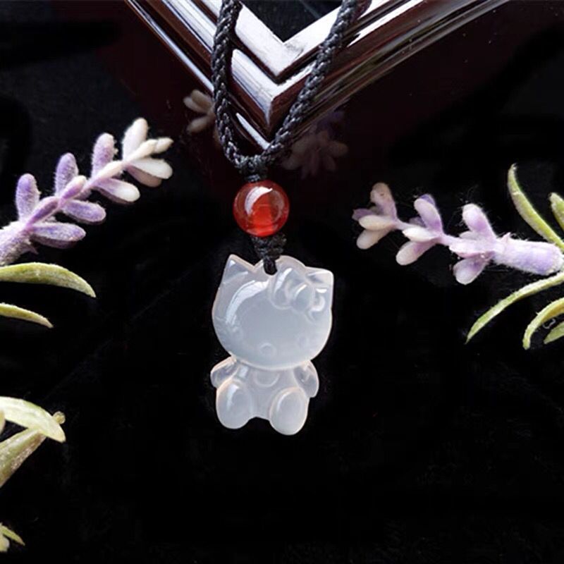 Bulk Ice Crystal White Jadeite Bear Pendant Agate Little Bear KT Cat Cartoon Jade DIY Accessory Livestream Supplies