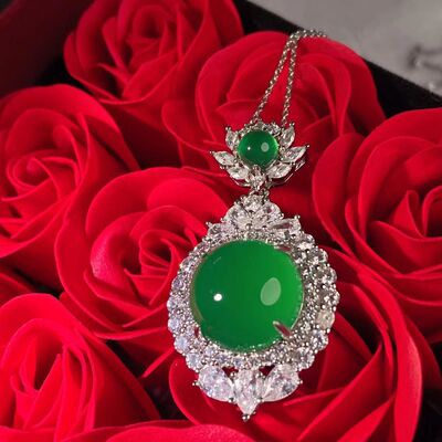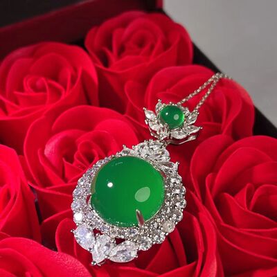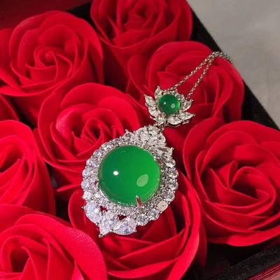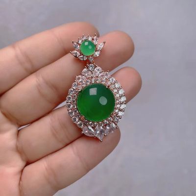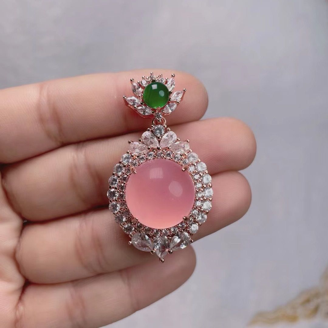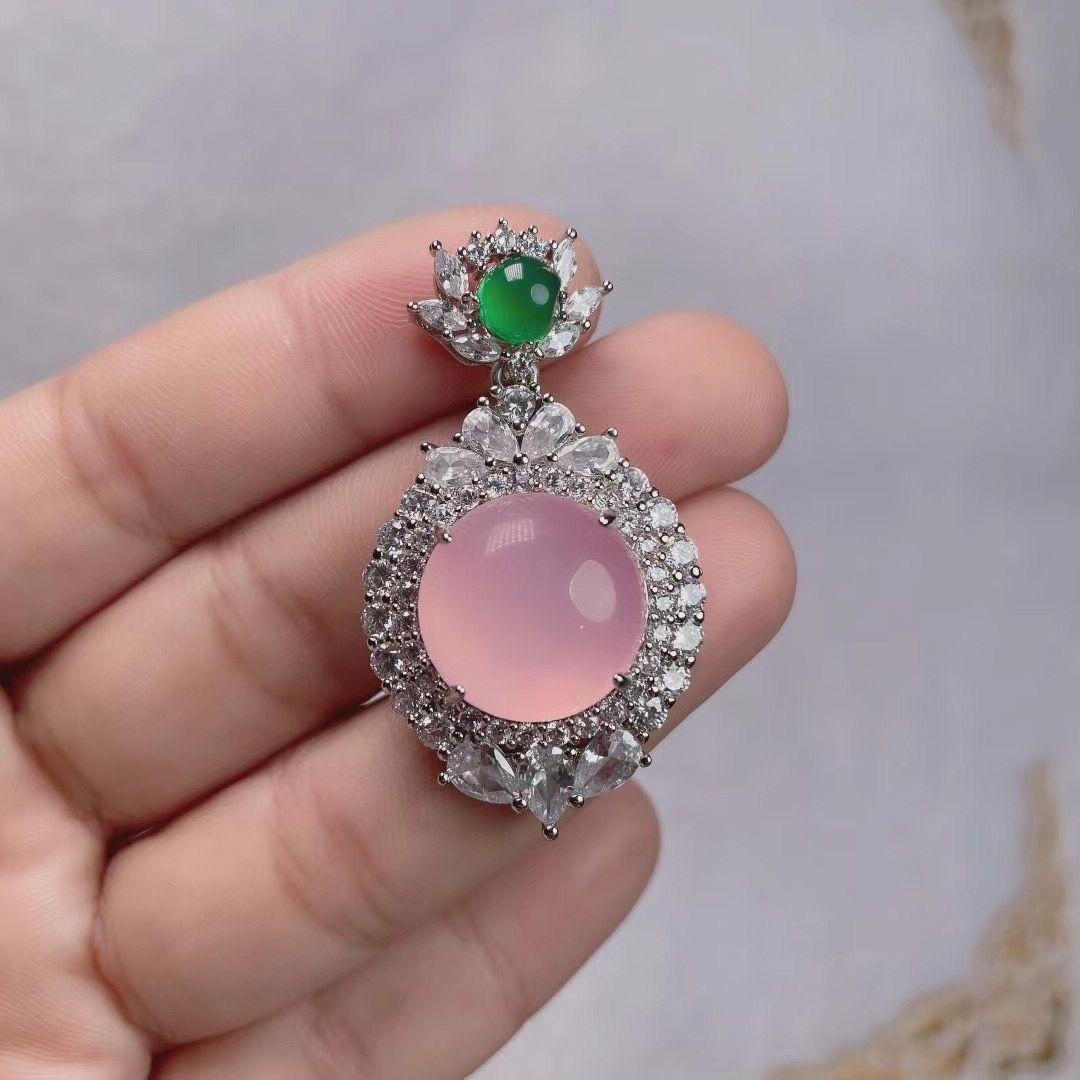 Wholesale factory high ice s925 silver rose gold embedded green agate pigeon egg round pendant, pink agate pendant