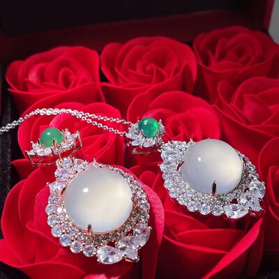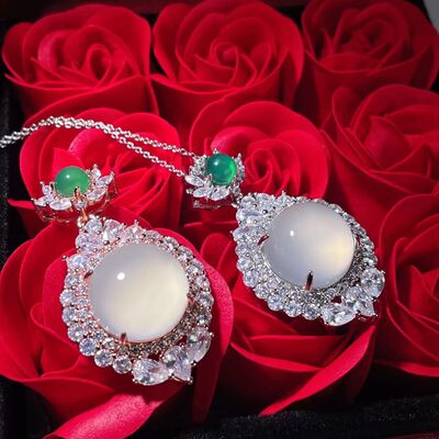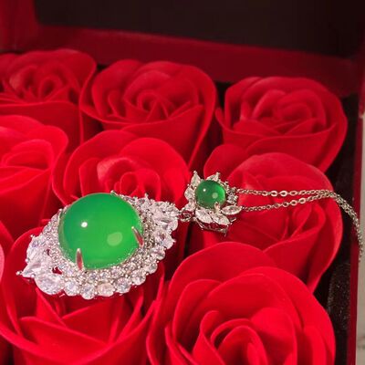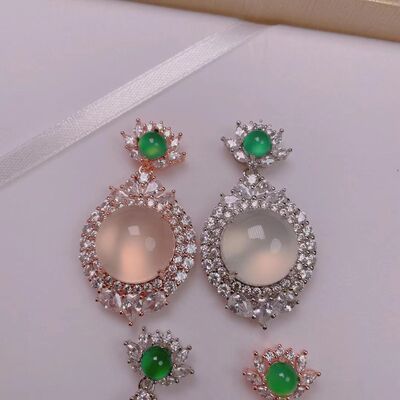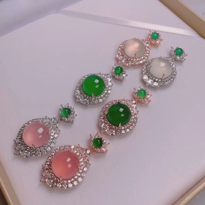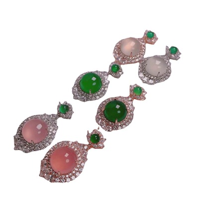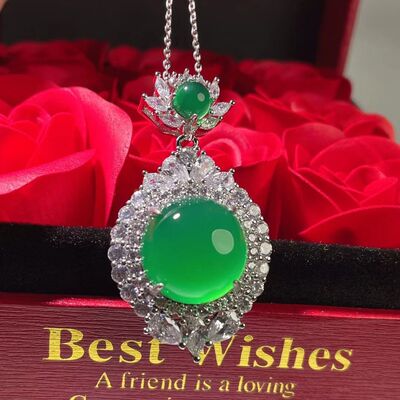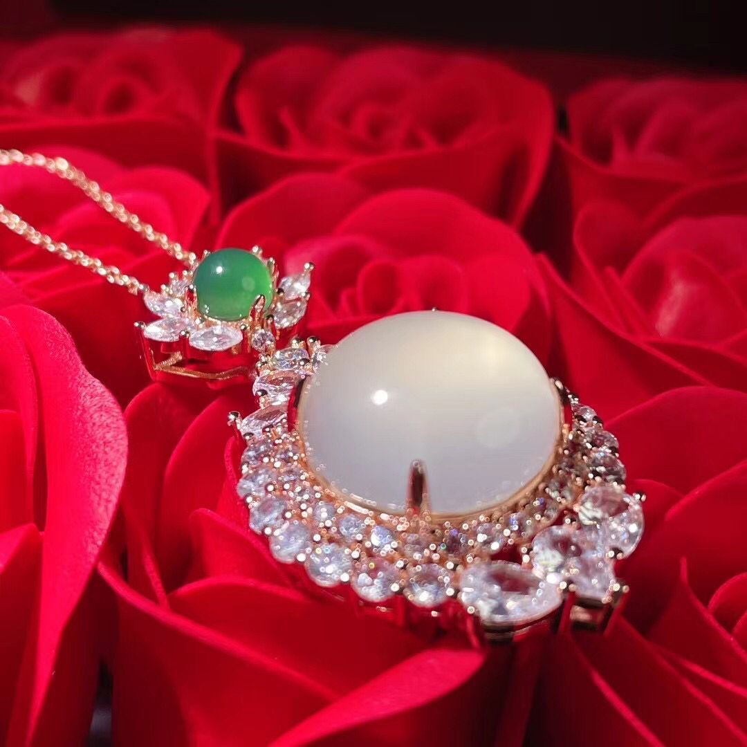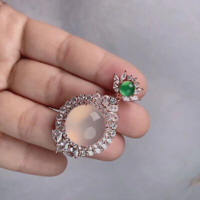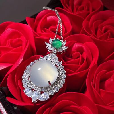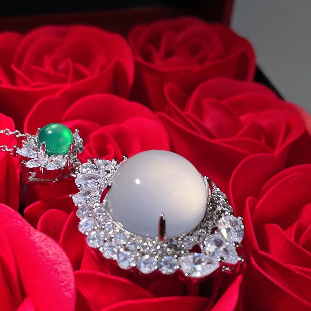 Wholesale factory high ice s925 silver rose gold embedded green agate pigeon egg round pendant, pink agate pendant