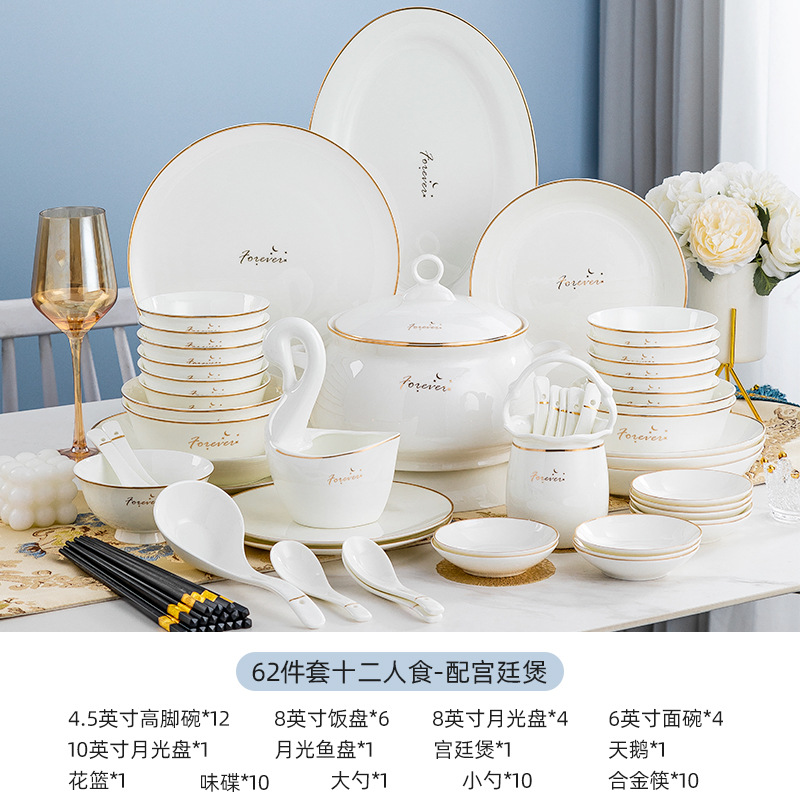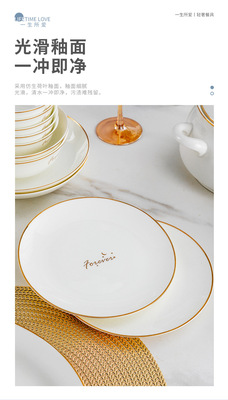 Set of tableware European style home bowl and chopsticks light luxury bone china moving gift tableware ceramic bowl and plate