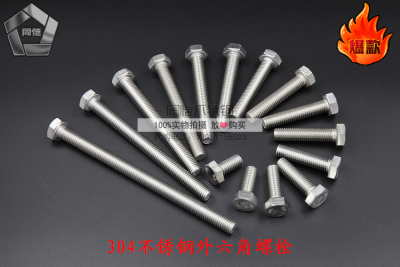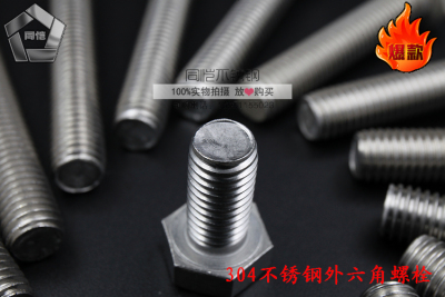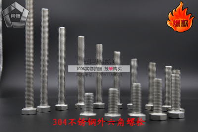 304 stainless steel hex external screw full thread hex head bolt full thread external hex rod stainless steel screw