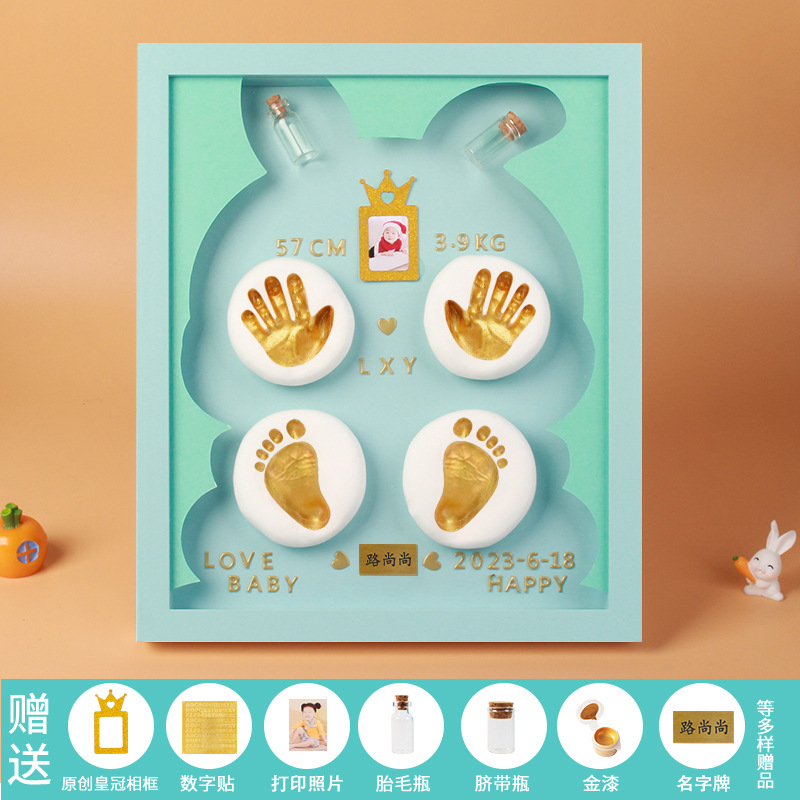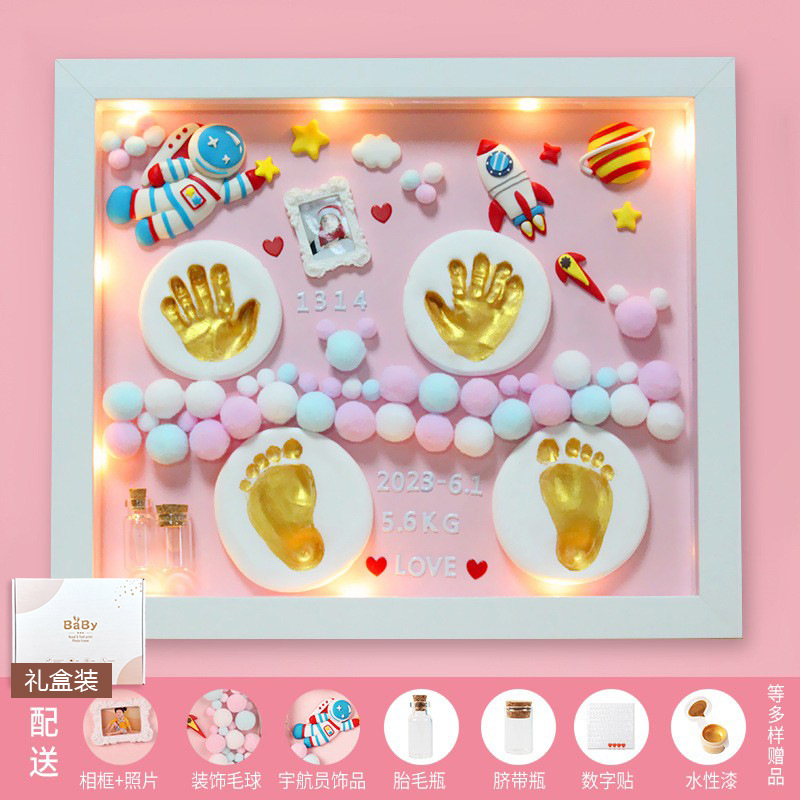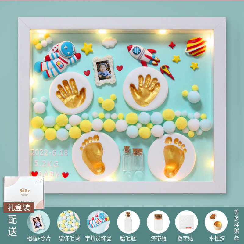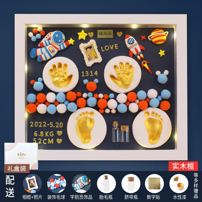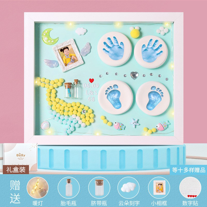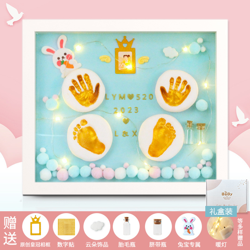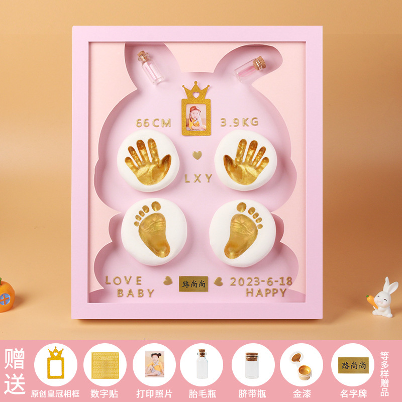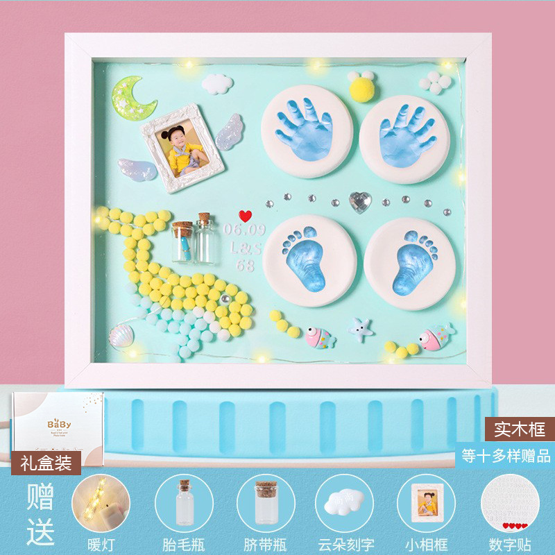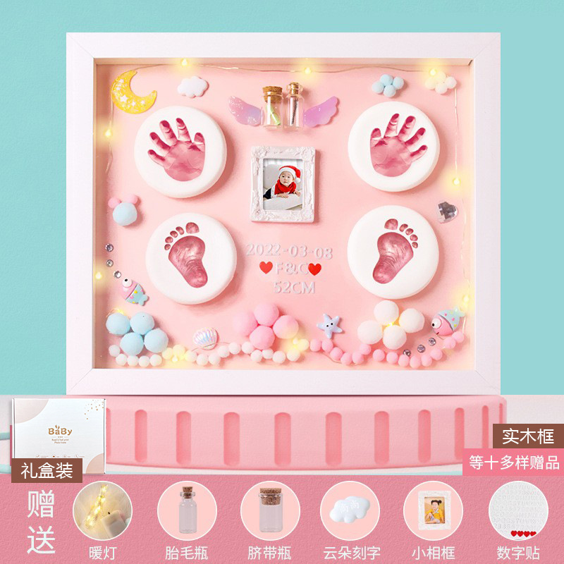 Baby hand and foot prints in mud and lanugo hair souvenir photo frame newborn baby hand prints and footprints DIY full moon gift for 100 days