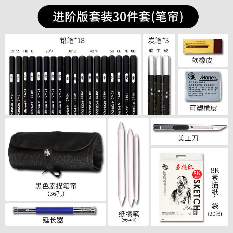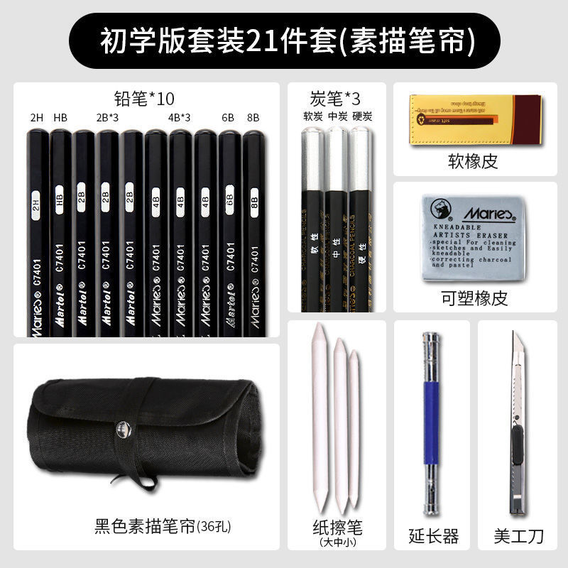 Marley Sketch Pencil Set Complete Set Student Sketch Charcoal Soft Medium Hard 2bhb Pencil Wholesale Studio Special