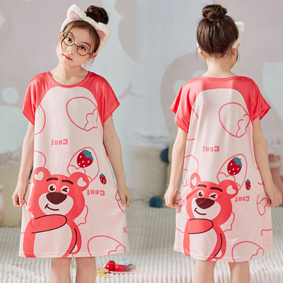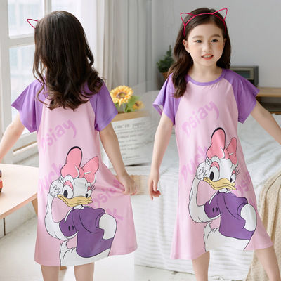 2023 New Children's Sleepwear for Girls Summer Cartoon Princess Lace Short Sleeve Thin Sleep Dress for Little Girls Homecoming Dress