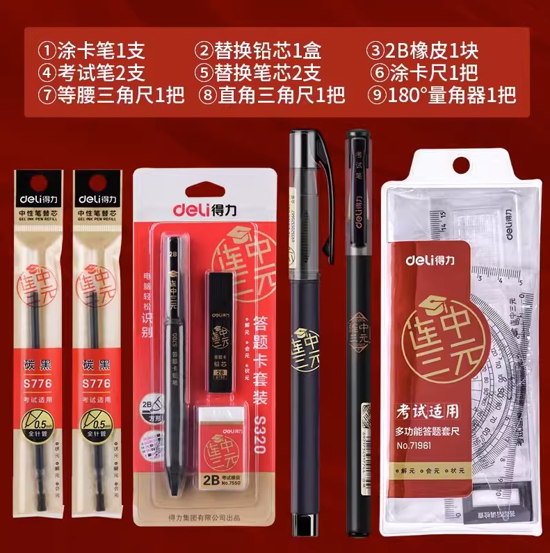 DeLi Stationery S320 Mechanical Pencil for Exam Answer Sheet with Optical Scanner, Set Including Pencil, Eraser, and Ruler