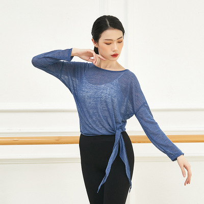 Classical dance practice top for women with subtle transparency and diagonal slit, Latin jazz dance attire for training class performance costume