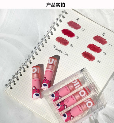 Cappuvini 三支裝套裝粉色熊唇泥啞光唇釉絲絨顯白國貨彩妝唇彩