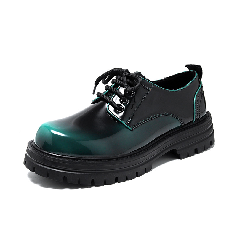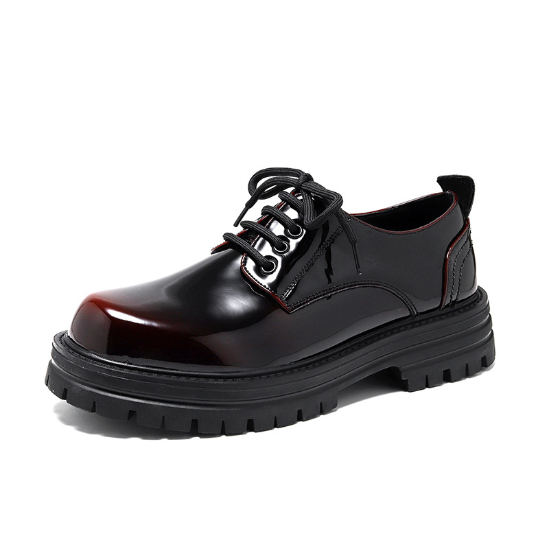 "Autumn and Spring Men's Ins Small Leather Shoes, Hong Kong Style, Japanese Style, Bright Black, Youth Thick Sole, British Style, Versatile Trendy Shoes 65225-R"
