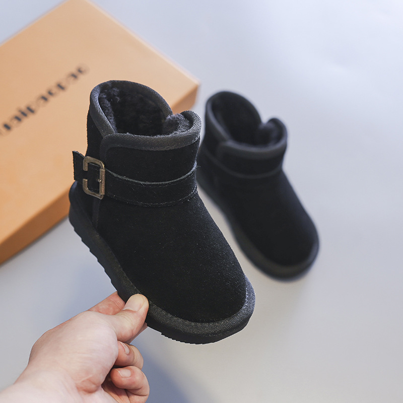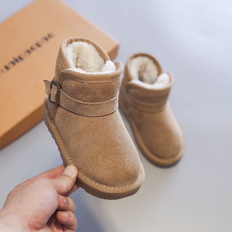 雪地靴男童女童冬季真皮保暖加絨加厚高幫中筒棉鞋一腳蹬麵包童鞋