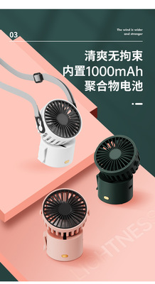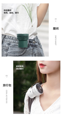 New versatile small fan, lightweight, mini, neck-mounted, waist-mounted, desktop, portable, USB rechargeable student fan