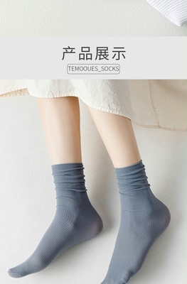 堆堆襪女夏季薄款冰冰襪中筒襪夏天純色簡約襪子女長襪冰絲襪長筒