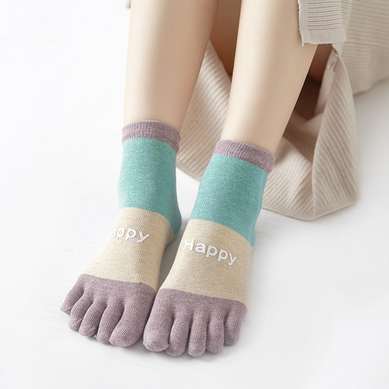 春秋五指襪女吸汗印膠卡通腳趾襪ins潮百搭韓版可愛短筒五分趾襪