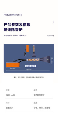 Car Snow Scraper with Removable Snow Shovel, Snow Brush, De-Icer, Ice Scraper, Winter Multi-Function Snow Clearing Brush