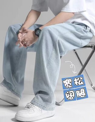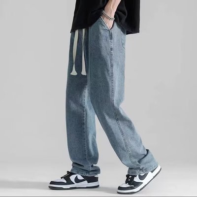 Straight-leg men's jeans 2023 summer thin model streetwear loose drop sensation wide-leg flowing ground-length casual pants