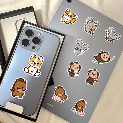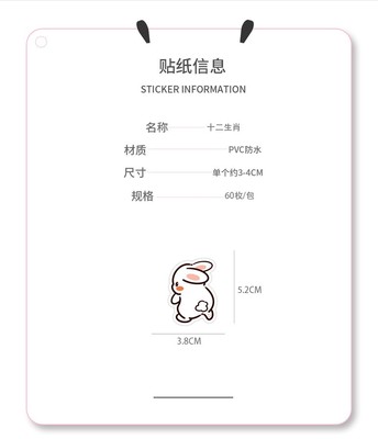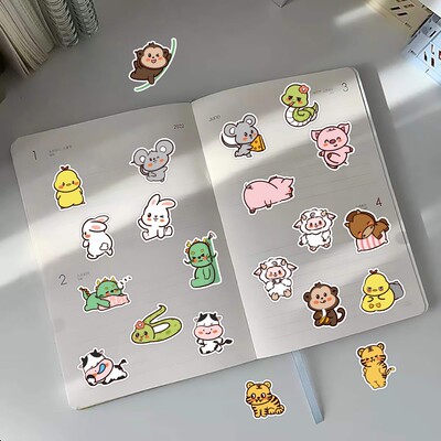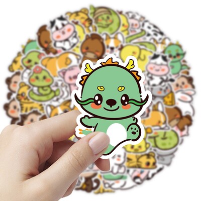 60 Original Cute Cartoon Chinese Zodiac Sticker Phone Case Luggage Student Reward Sticker Wholesale