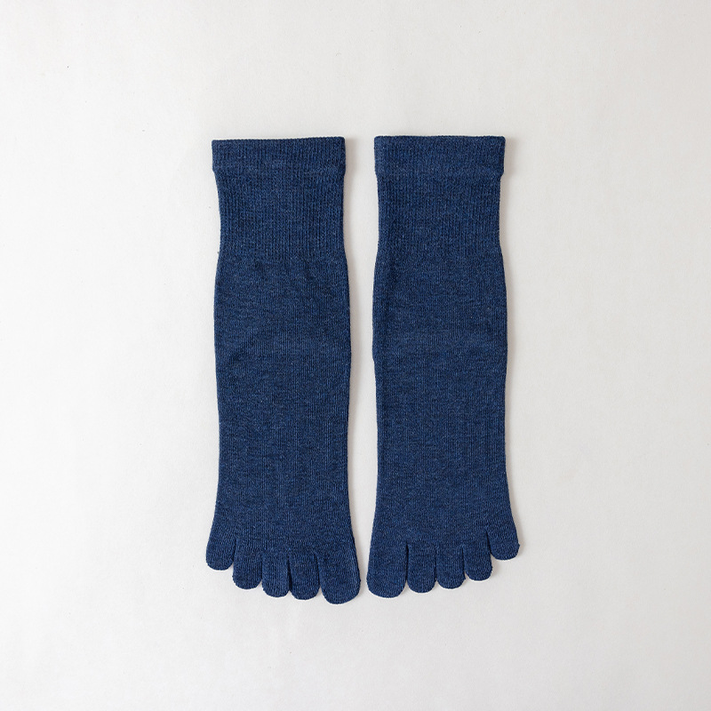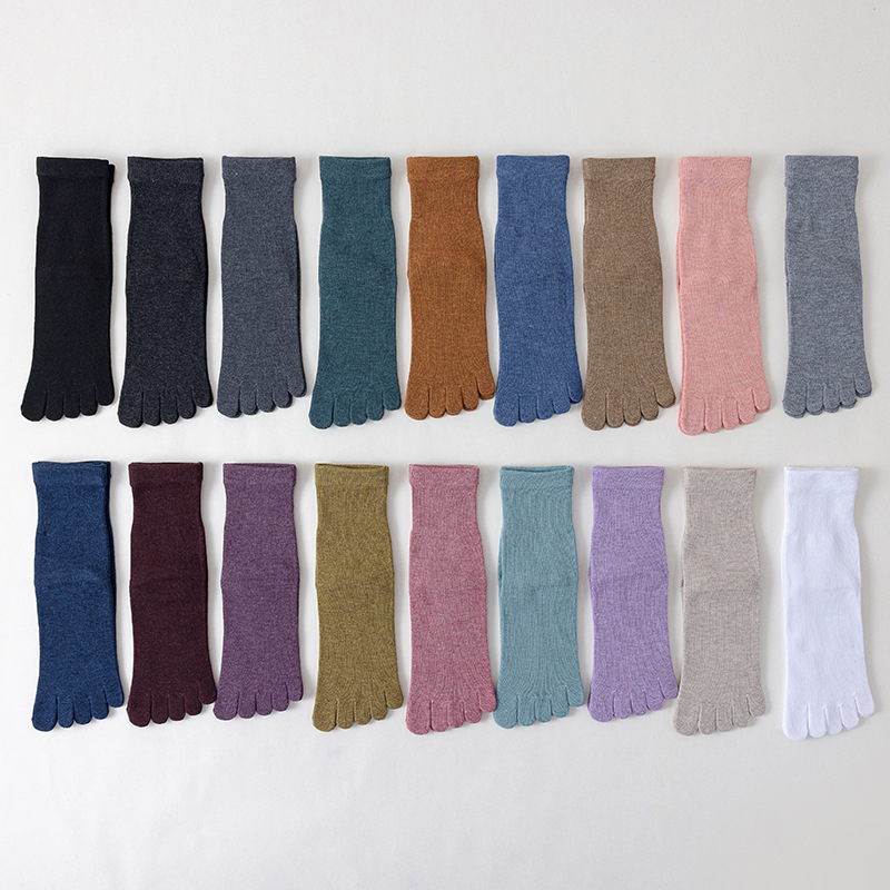 Five-finger socks for men and women, all-season cotton socks, ins sports and leisure versatile mid-calf socks, solid color breathable split-toe socks