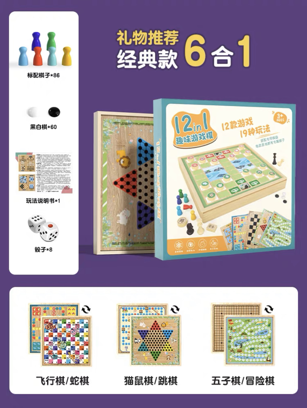 Gift Box 8-in-1【Flying Chess + Snake Chess + Cat and Mouse Chess + Checkers + Gomoku + Adventure Chess + Chinese Chess + Animal Chess】