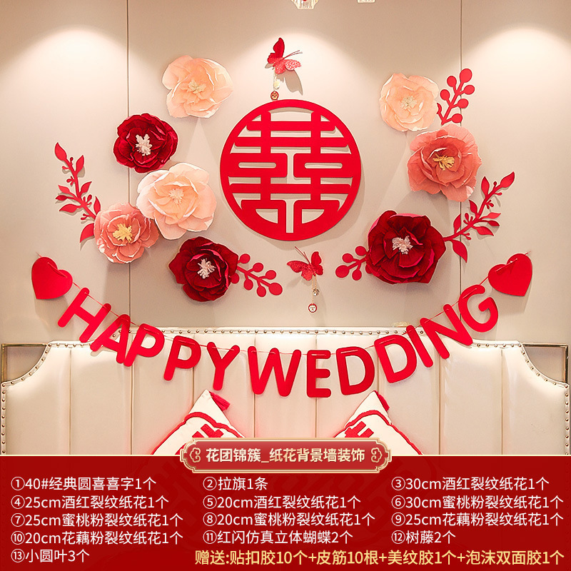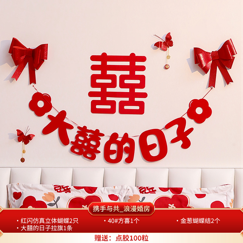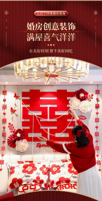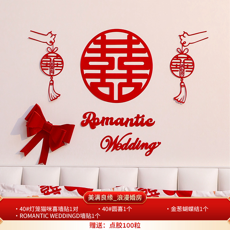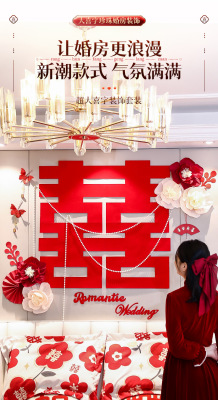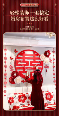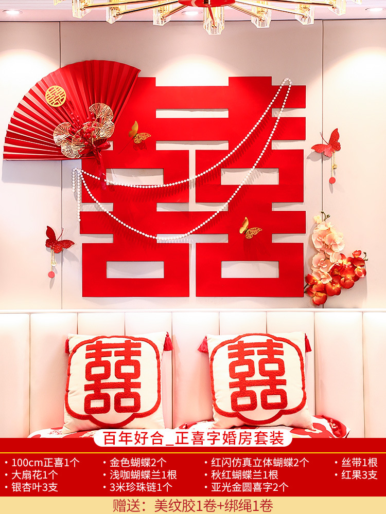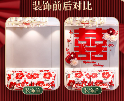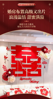 Bride's Bedroom Living Room Bed Background Wall Pearl Decoration Wedding Room New House Double Happiness Ribbon Set