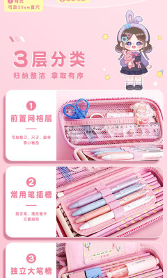 High-quality, multi-functional, 3D double-layer pencil case for primary school students, cute and large-capacity stationery box, children's cartoon-style pencil case