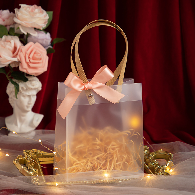 Holiday gift bag Frosted transparent handbag Wedding candy bag Souvenir knot Wedding box bag wholesale