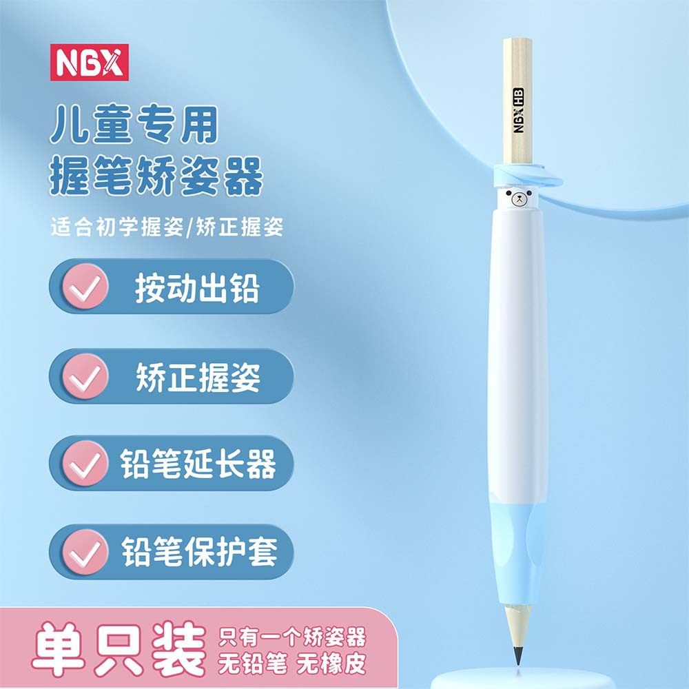 Model: Pencil Grip and Posture Corrector Set-Little Bear Blue (Ten Pencils and Erasers Free)