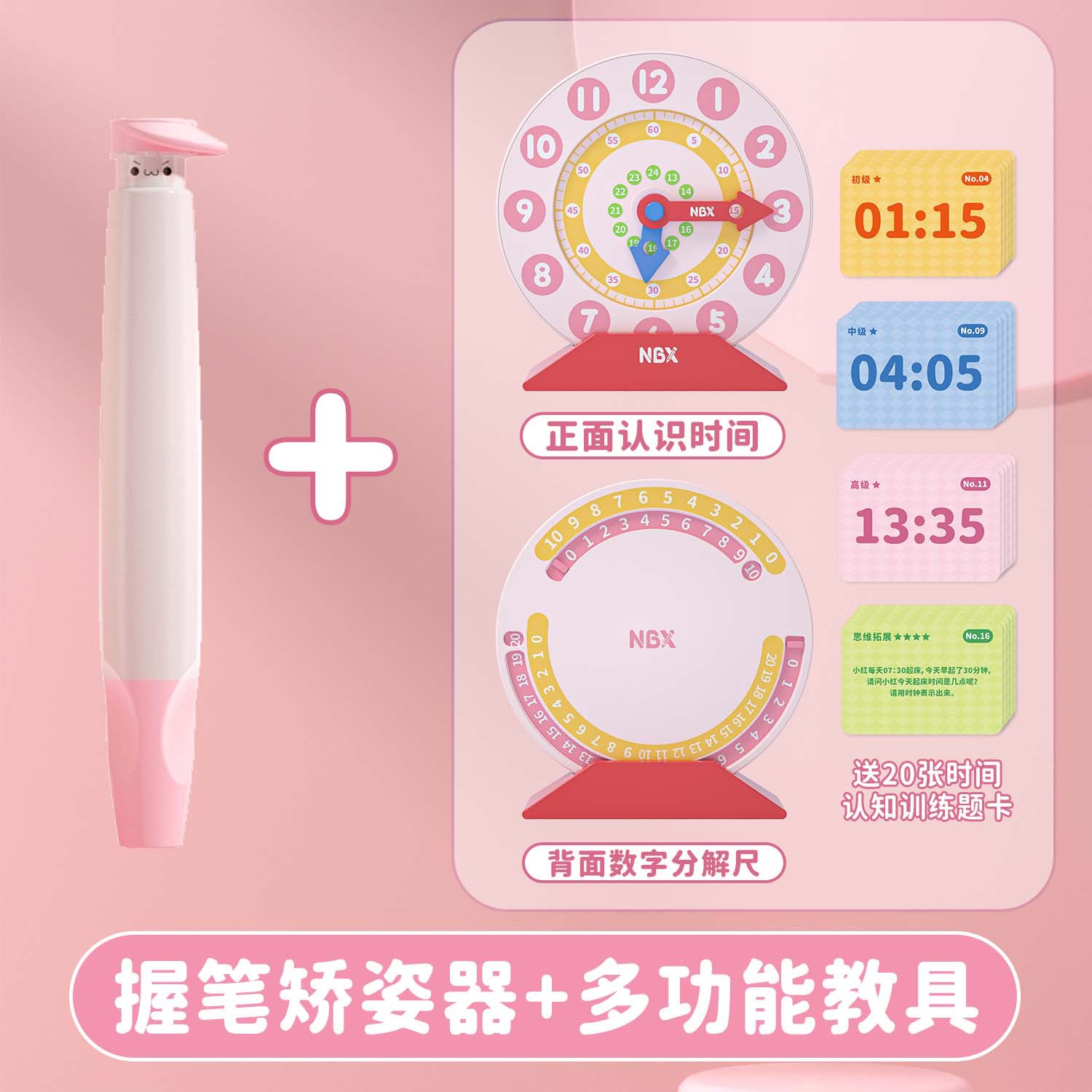 Model: Pen Holder and Posture Corrector Set-Cute Pink (Ten Pencils and Erasers Free)