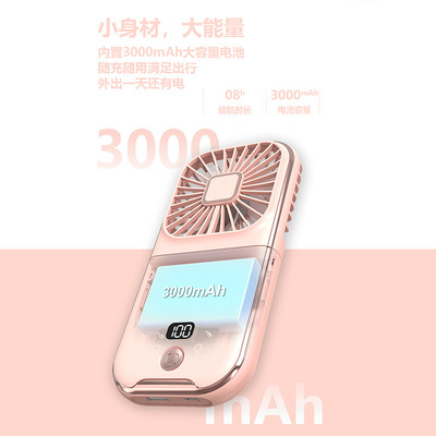 2023 New Handheld Small Fan USB Power Bank Lazy Desk Folding Portable Hanger Fan Gift Cross-border