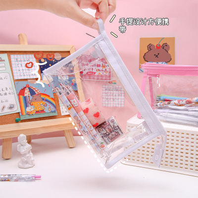 HOT TREND DIY Pen Bag for Cute Girls, Primary School Students, Transparent Pen and Pencil Case, Large Capacity PVC Storage Makeup Bag