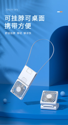 New Mini Silent Desktop Fan Portable Foldable Neck Suspension USB Charger Phone Gaming Stand Small Fan