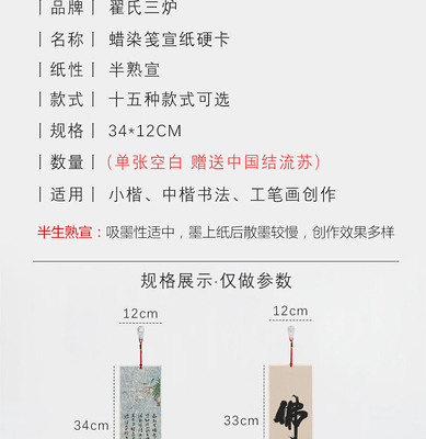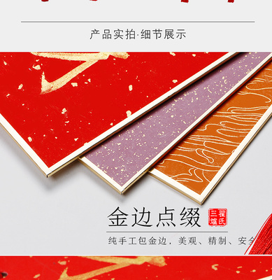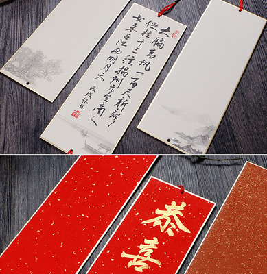 Chinese-style Xuan paper card hard card hanging decoration book French painting Xuan paper calligraphy work paper hanging ornament four-character phrase calligraphy red
