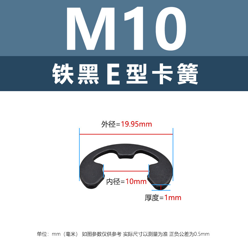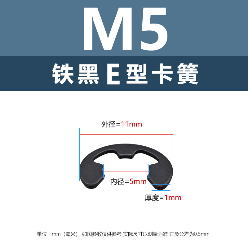 Factory direct sales iron black E-shaped opening circlip wholesale M1.2-M15 fastener stop circlip locking buckle circlip