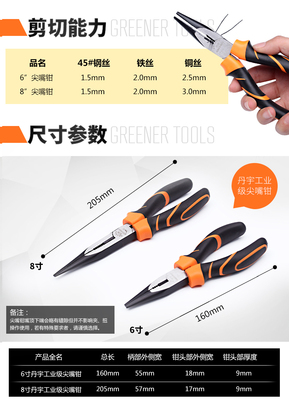 Green forest pointed pliers 6 process 8-inch multi-purpose special pointed pliers handmade mini pliers