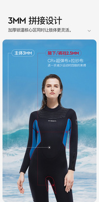 DIVE&SAIL warm wetsuit for men 3MM long-sleeved one-piece wetsuit for women cold-proof snorkeling wetsuit