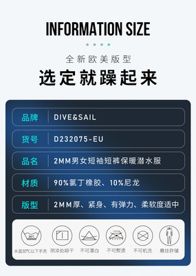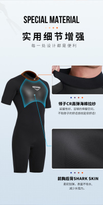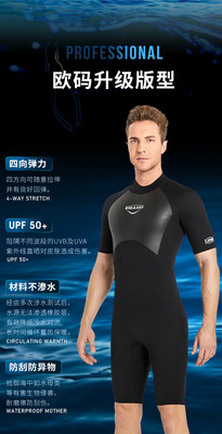 DIVE&SAIL wetsuit 2MM short-sleeved warm wetsuit European and American large size snorkeling swimming cold-proof surfing suit