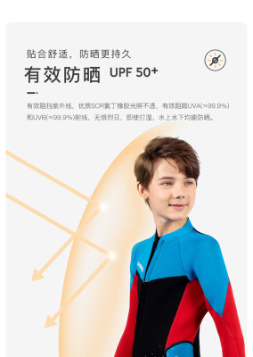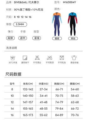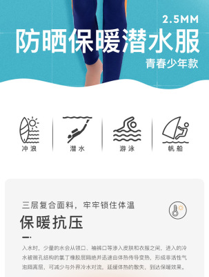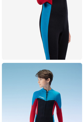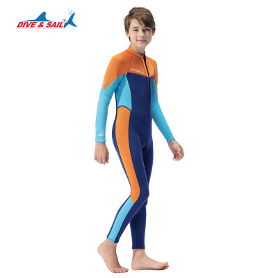 DIVE&SAIL children's wetsuit 2.5MM long-sleeved one-piece warm snorkeling suit teenagers surfing winter swimsuit