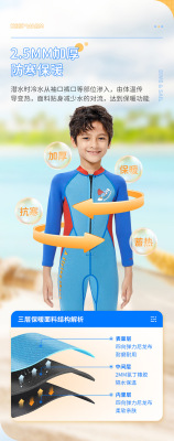 New children's warm diving suit 2.5MM long sleeve one-piece swimwear autumn and winter thick cold-resistant floating diving surfing suit