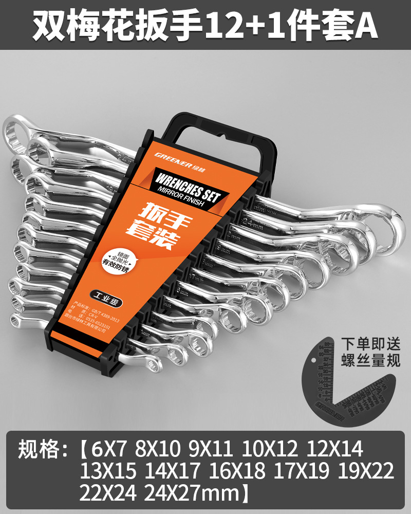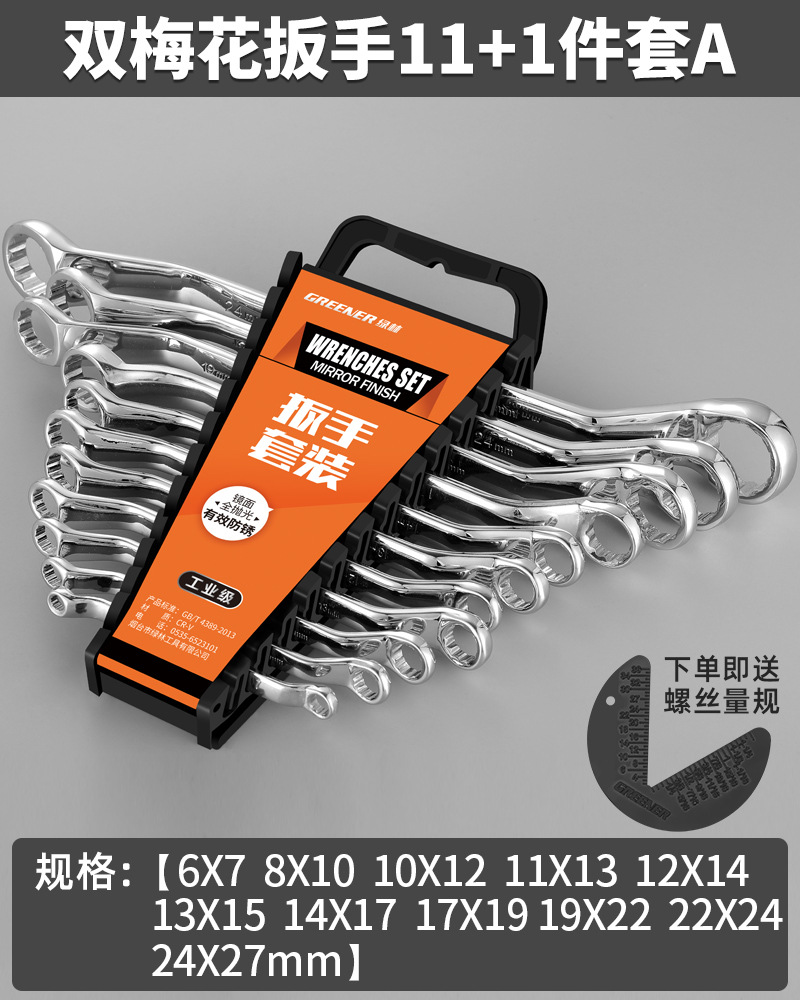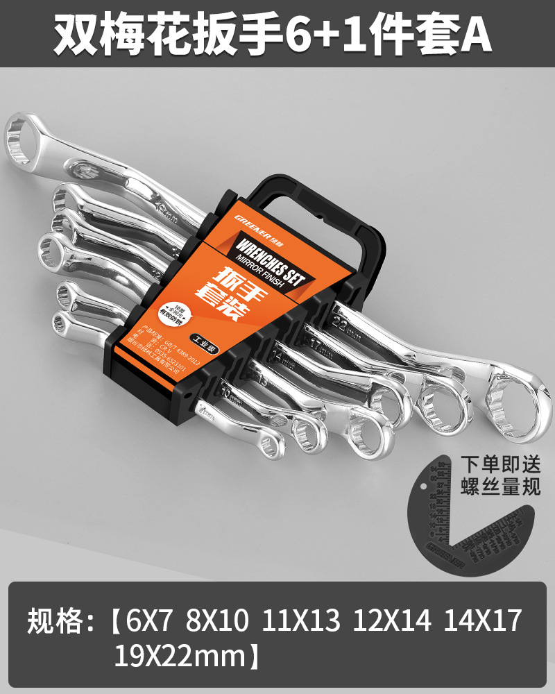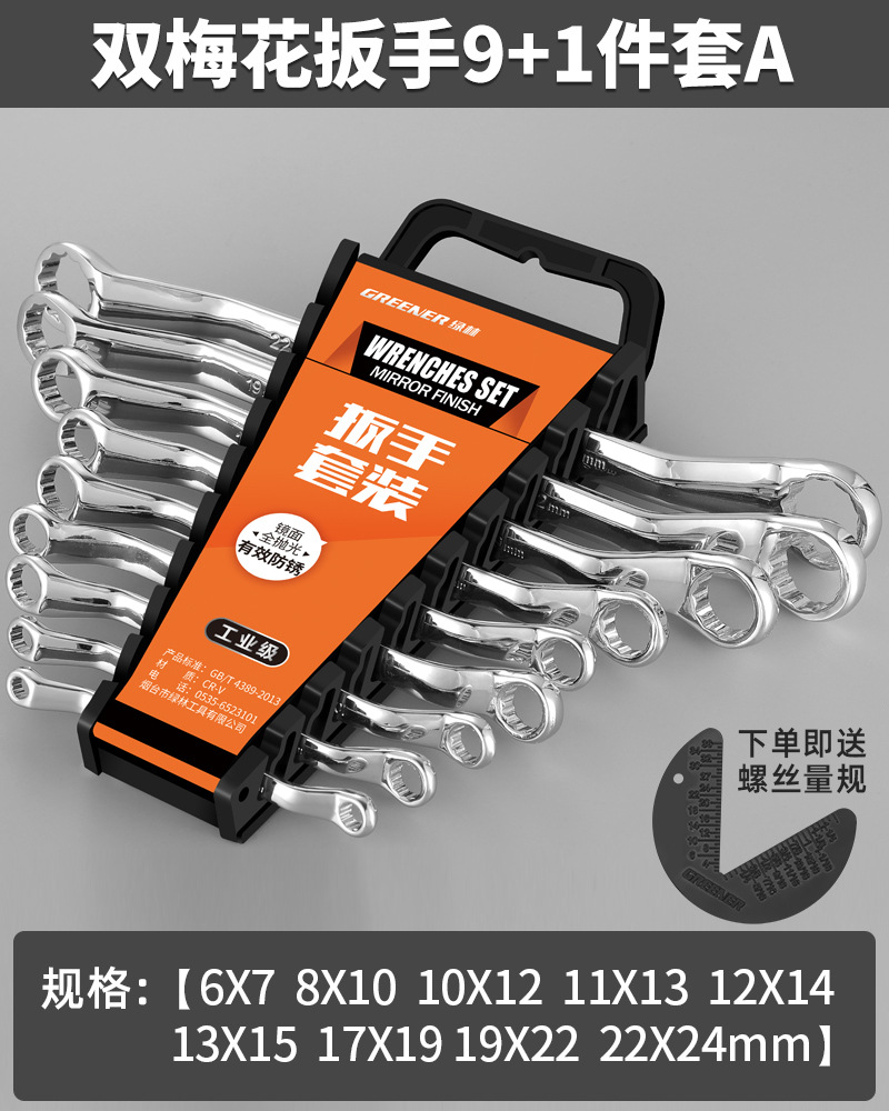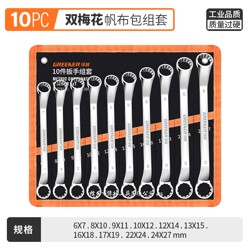 Green Forest Crescent Wrench Auto Repair Double-Headed Crescent Wrench 17-19mm Machine Repair Eye Wrench Tool Set 8-10mm