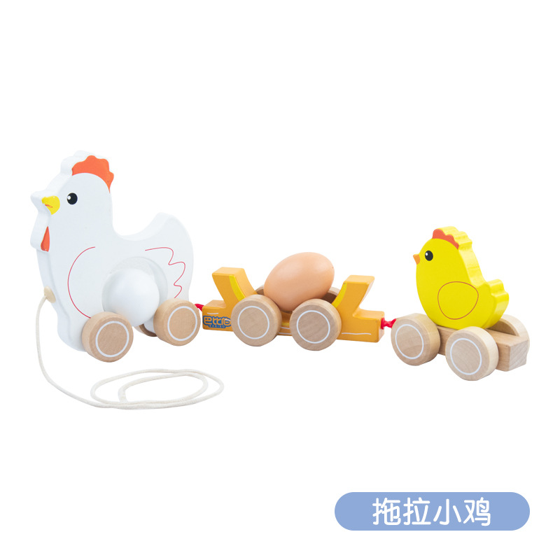 Wooden cartoon animal puppy crocodile pull-along toy for infants 0-3 walking