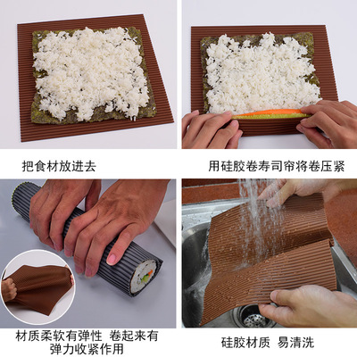 Elastic tightening silicone sushi roller blinds, seaweed and seaweed rice rolls, non-stick silicone roller blinds, daily cooking tools, high temperature resistance