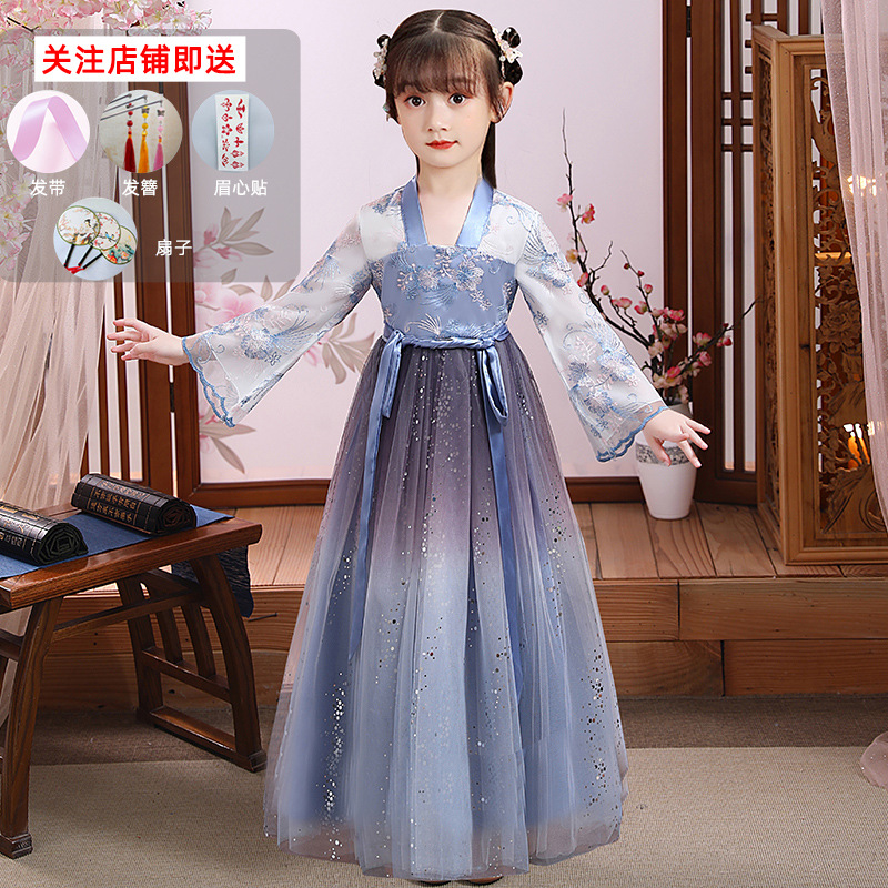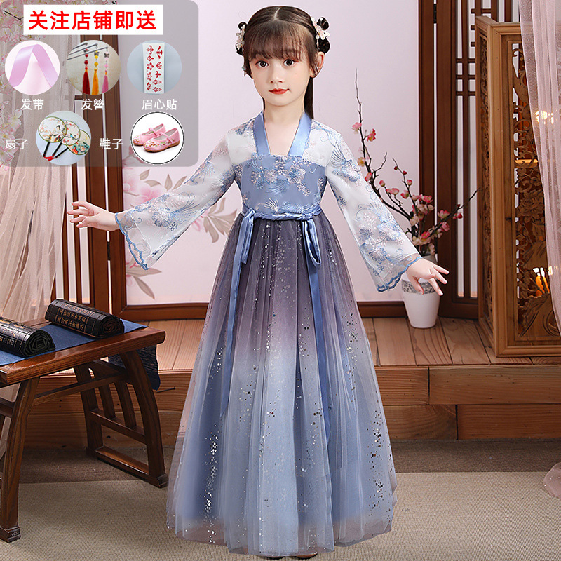 Hanfu Girls Spring and Summer Children's Tangzhuang Ancient Style Fairy-like Chinese Style Dress 2023 Ancient Costume Autumn Princess Girl