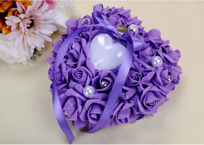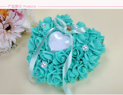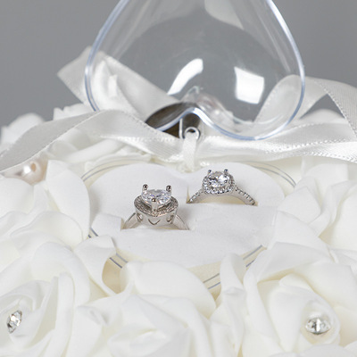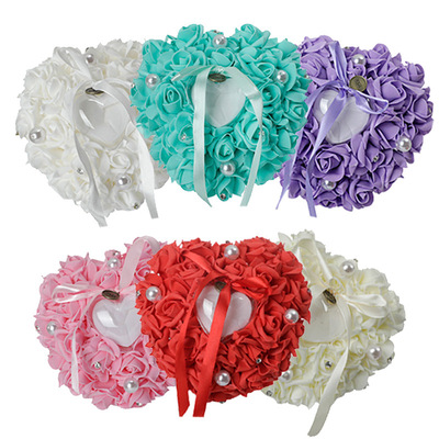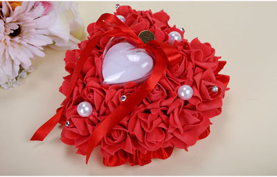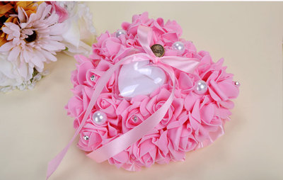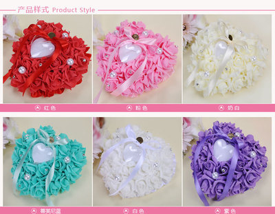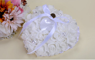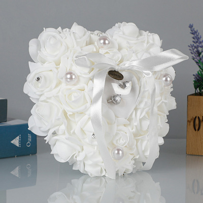 Wedding Supplies Bride and Groom White Ring Pillow PE Foam Rose Heart Shape Ring Pillow 13*15 Wedding Ring Box