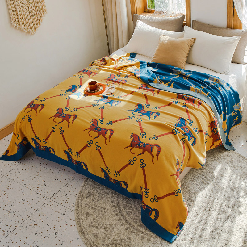 Pattern Style: Yellow Luxury Horse Towel Blanket