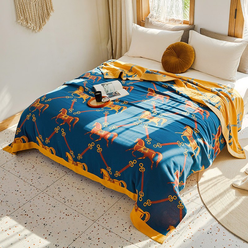 Pattern Style: Blue Luxury Horse Towel Blanket