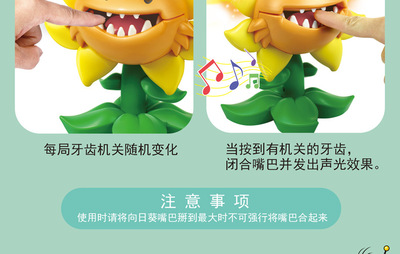 Original Plants vs. Zombies Toys: Hungry Mouth Flower Biting Finger with Sound and Light, Tooth Pulling Big Mouth Flower Eating Human Flower, Avocado Shark