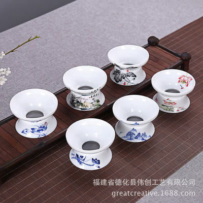 Ceramic filter net with blue and white underglaze, personalized tea filter, creative ceramic tea set accessory wholesale