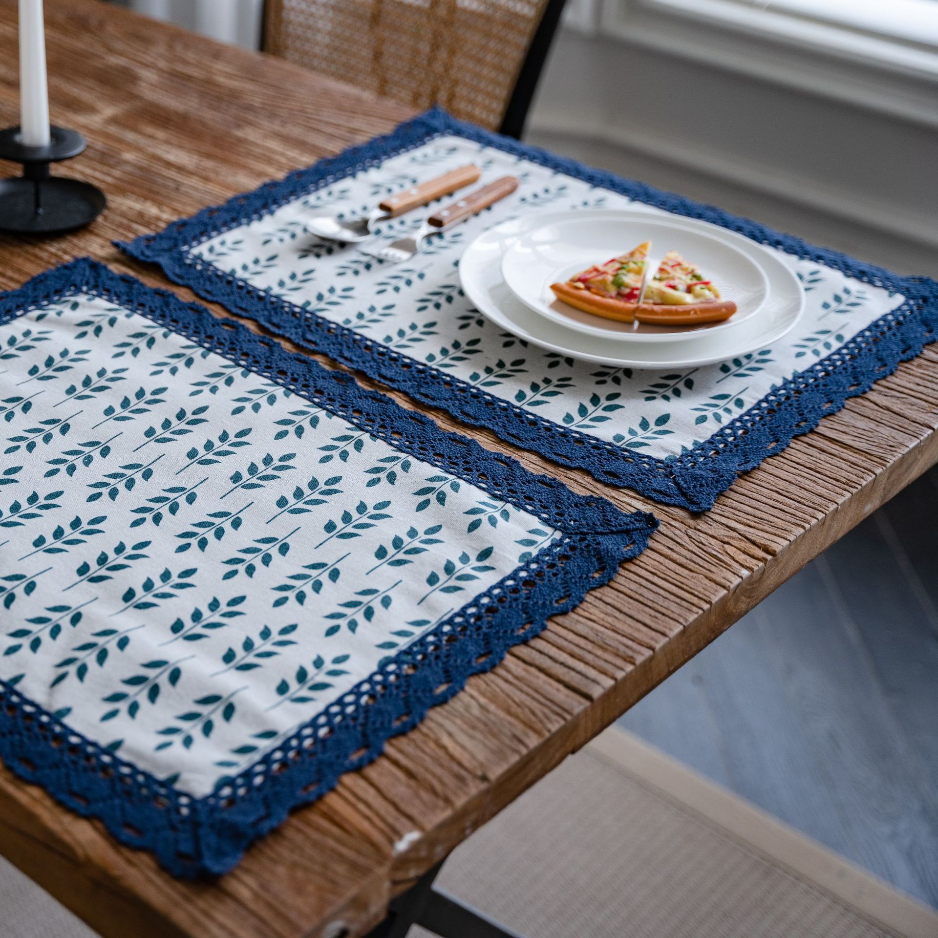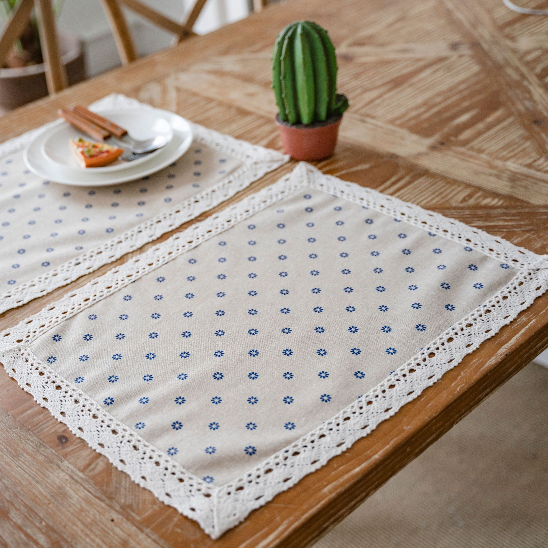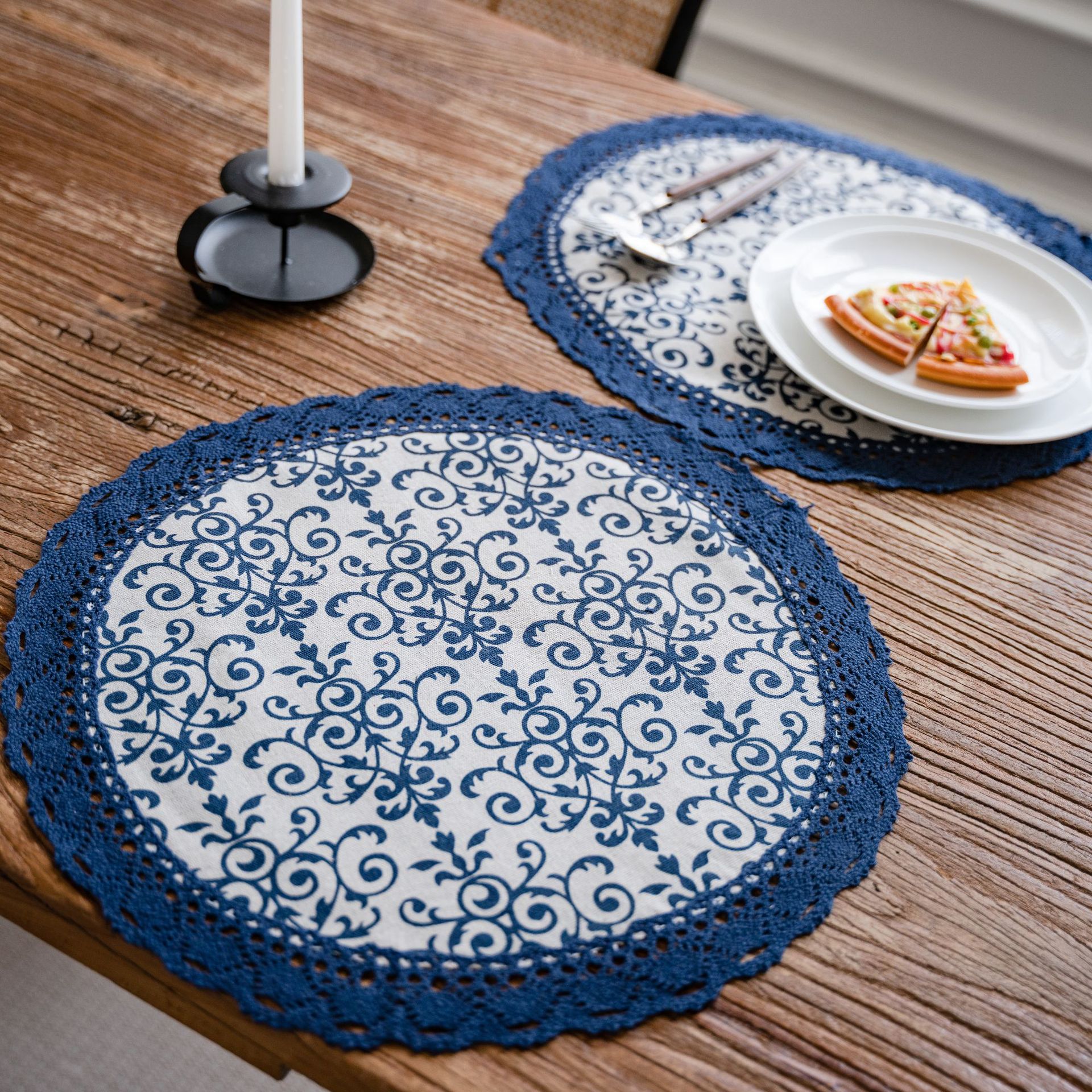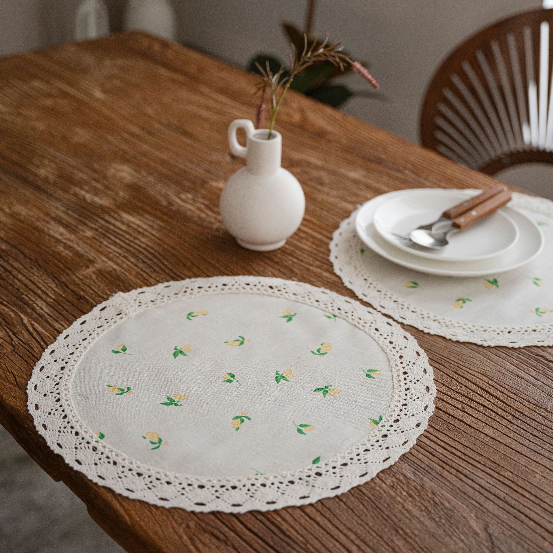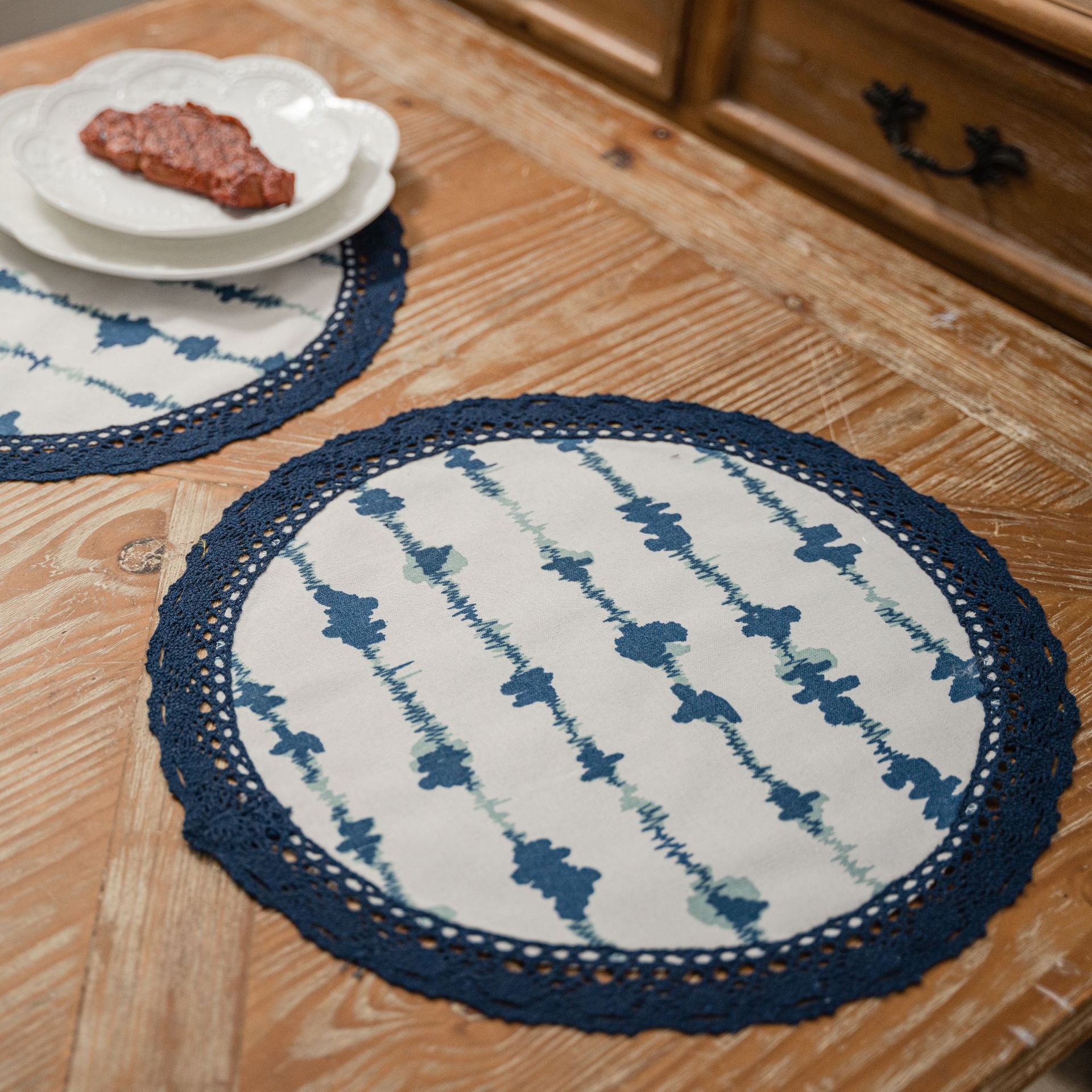 伊縵琪韻餐墊單層蕾絲花邊圓形長方形裝飾隔熱幾何印花單片裝