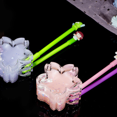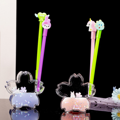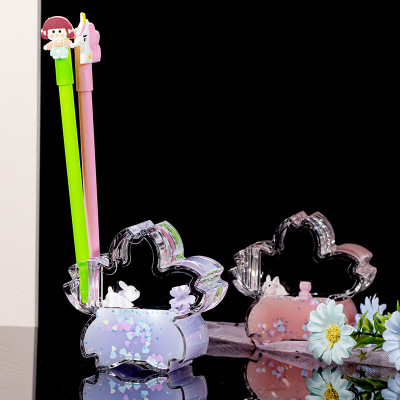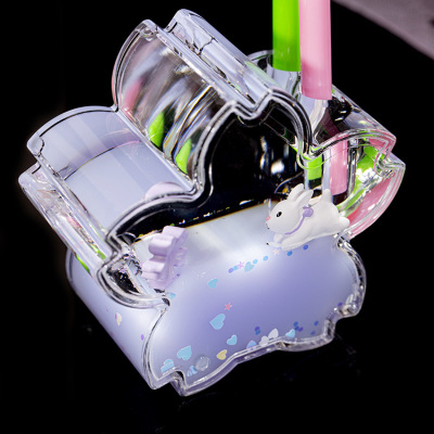Floating oil drop pen holder with cartoon rabbit, a toy for girls, student gift for festivals, desktop decoration