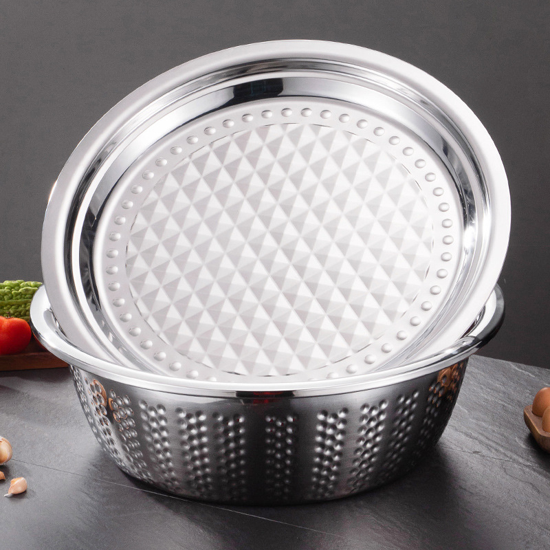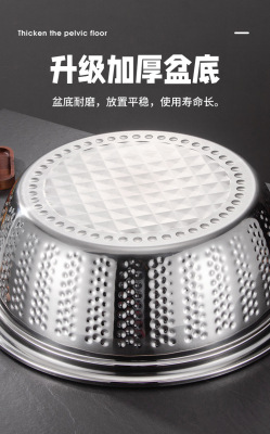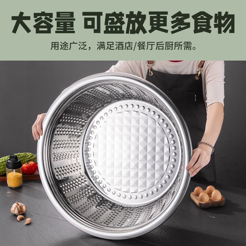Stainless steel basin: versatile washbasin, vegetable-washing tub, thickened soup pot, canteen soup bowl, restaurant-grade serving bowl, large face basin
