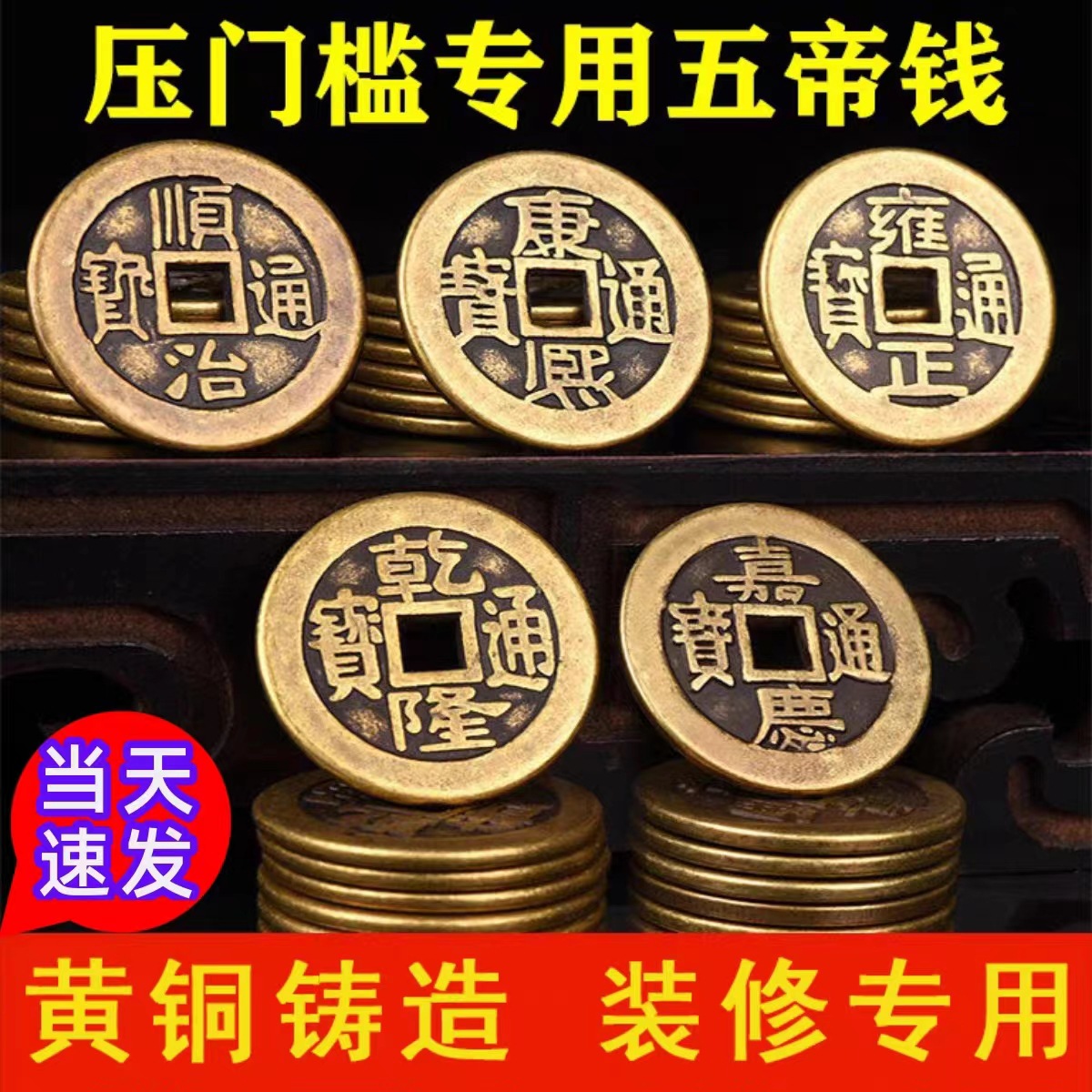 Genuine Five Emperors Coins for Door Threshold Placement: Thickened Copper Coin Ornament for Underdoor Stones in Household Entrance Decoration