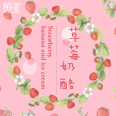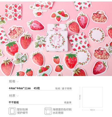 Sticker set for MoMo box, strawberry cheese, creative handbook item decoration, 45 pieces in total